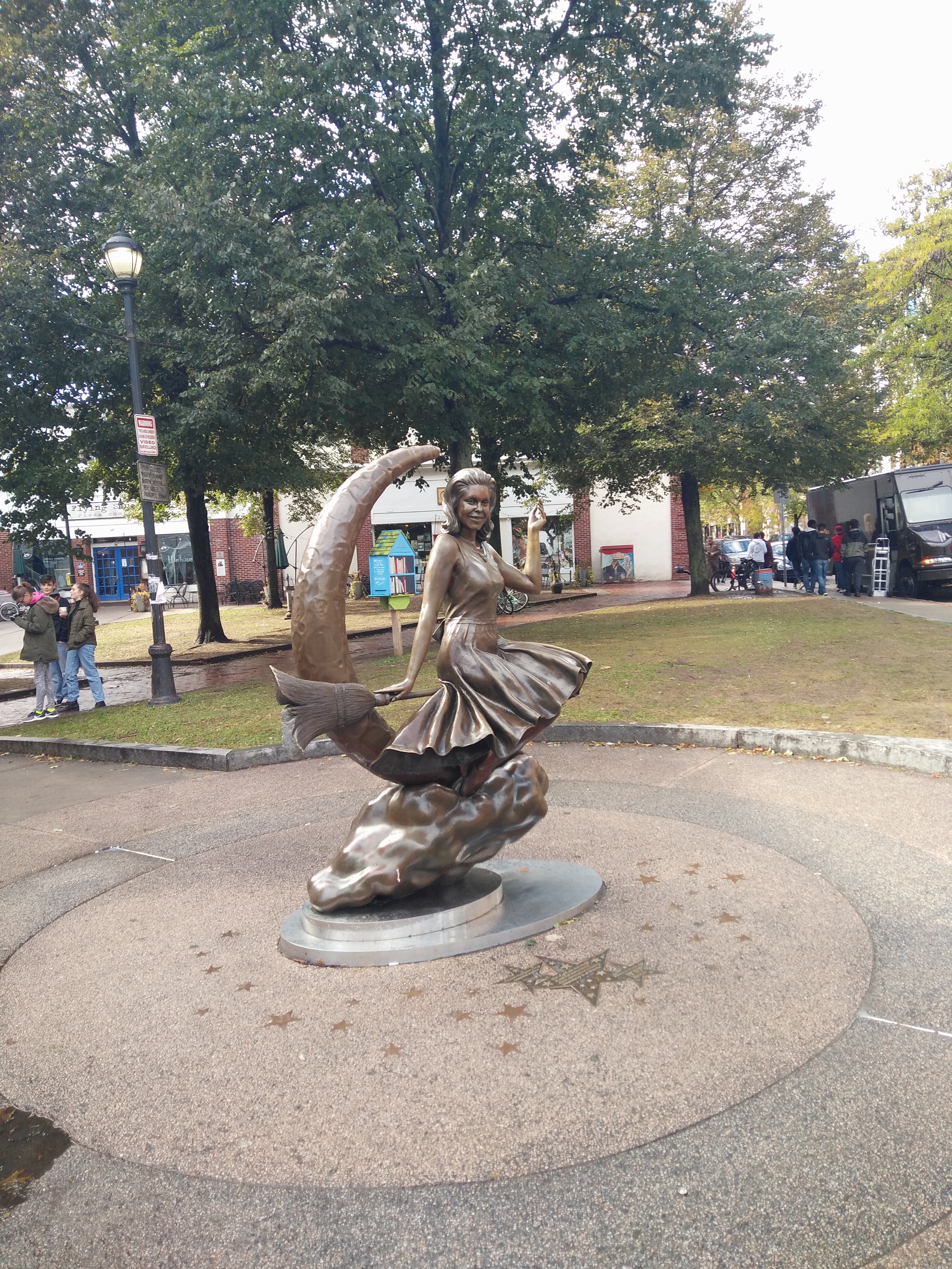 The day after, we drove to Salem. This is the infamous city where unfair trials against witchcraft took place in 1692/1693. 19 people were executed. There is a lot of history in that place. The most interesting part was the cemetery, with some very old graves and a monument to the victims of the witch trials. The rest is pretty commercial and touristy, sadly. Anyways, Jeremy went to the Nightmare Gallery, a nice collection of costumes, statues and information on horror films. The owner is a true fan of the genre, and even if quite short, worth seeing while in Salem. In the mean time, Jade browsed the witchy shops in search for some literature.