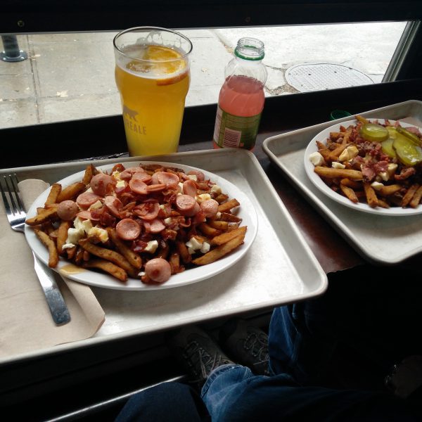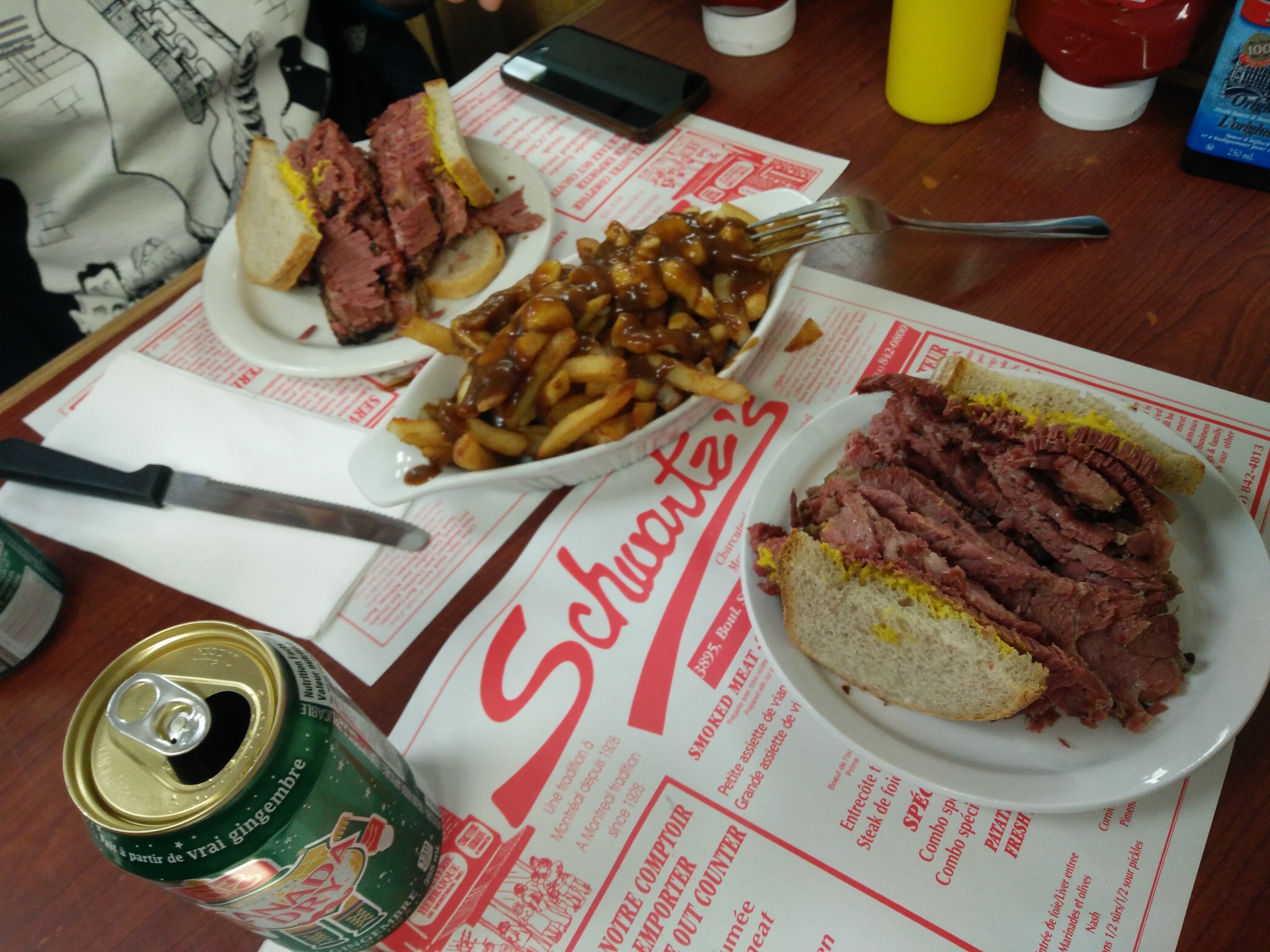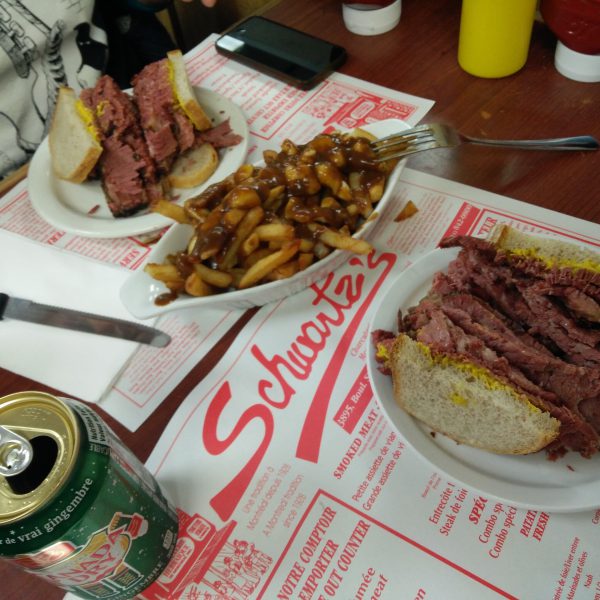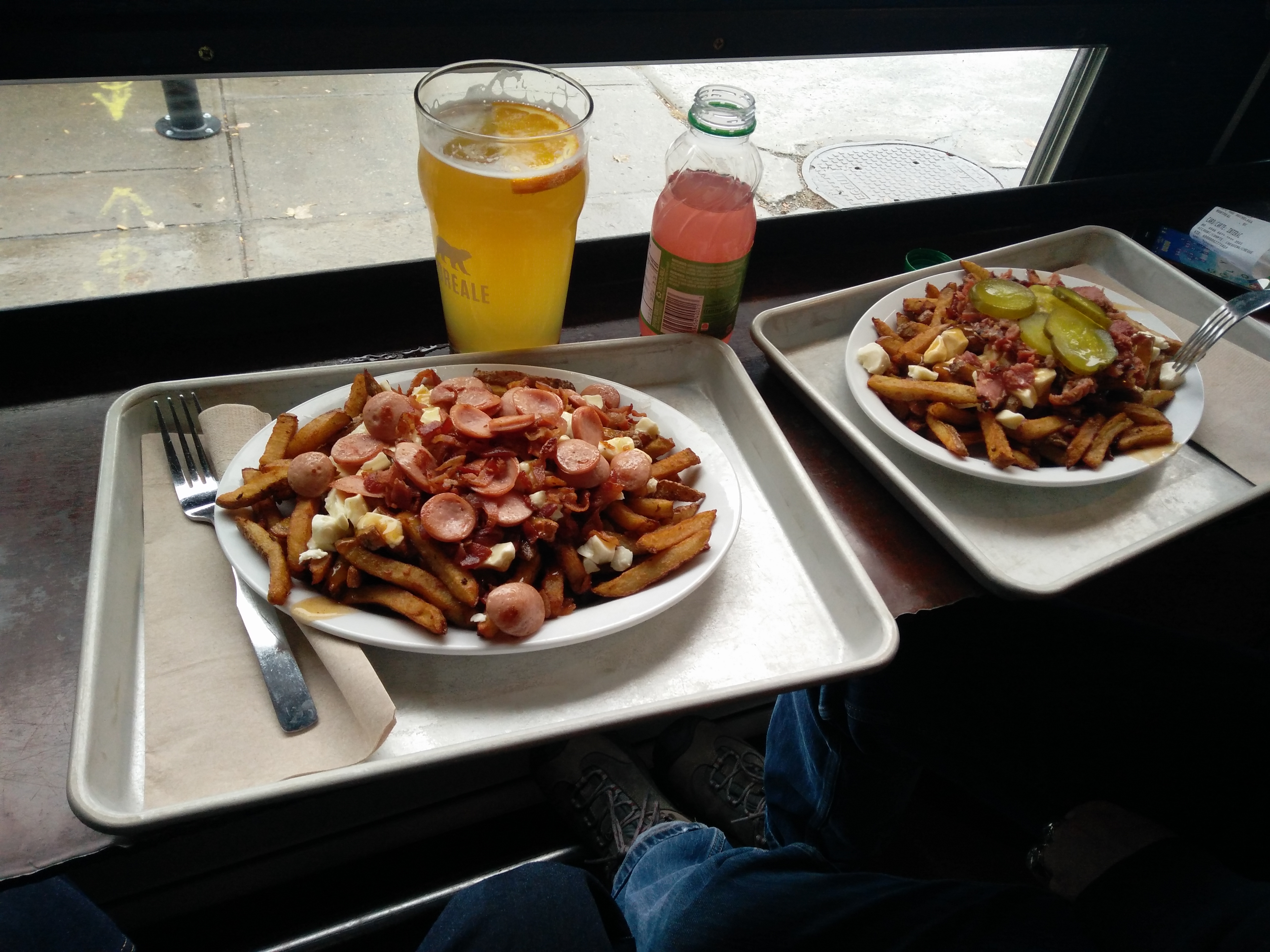 Another thing that we really liked in Montreal was the food: finally some proper bread and cheese! And the poutine here is something else… For those who don’t know what a poutine is, it’s a Quebec dish that consists of a portion of fries topped up with melted cheese curds and gravy. If you have a fancy one, they usually also throw in some more ingredients. Montreal is also famous for their Jewish deli sandwiches with smoked meat. We dined at Schwartz’s Deli one night and it was delicious indeed. In Hochelaga, we had great vegan food at Antidote.