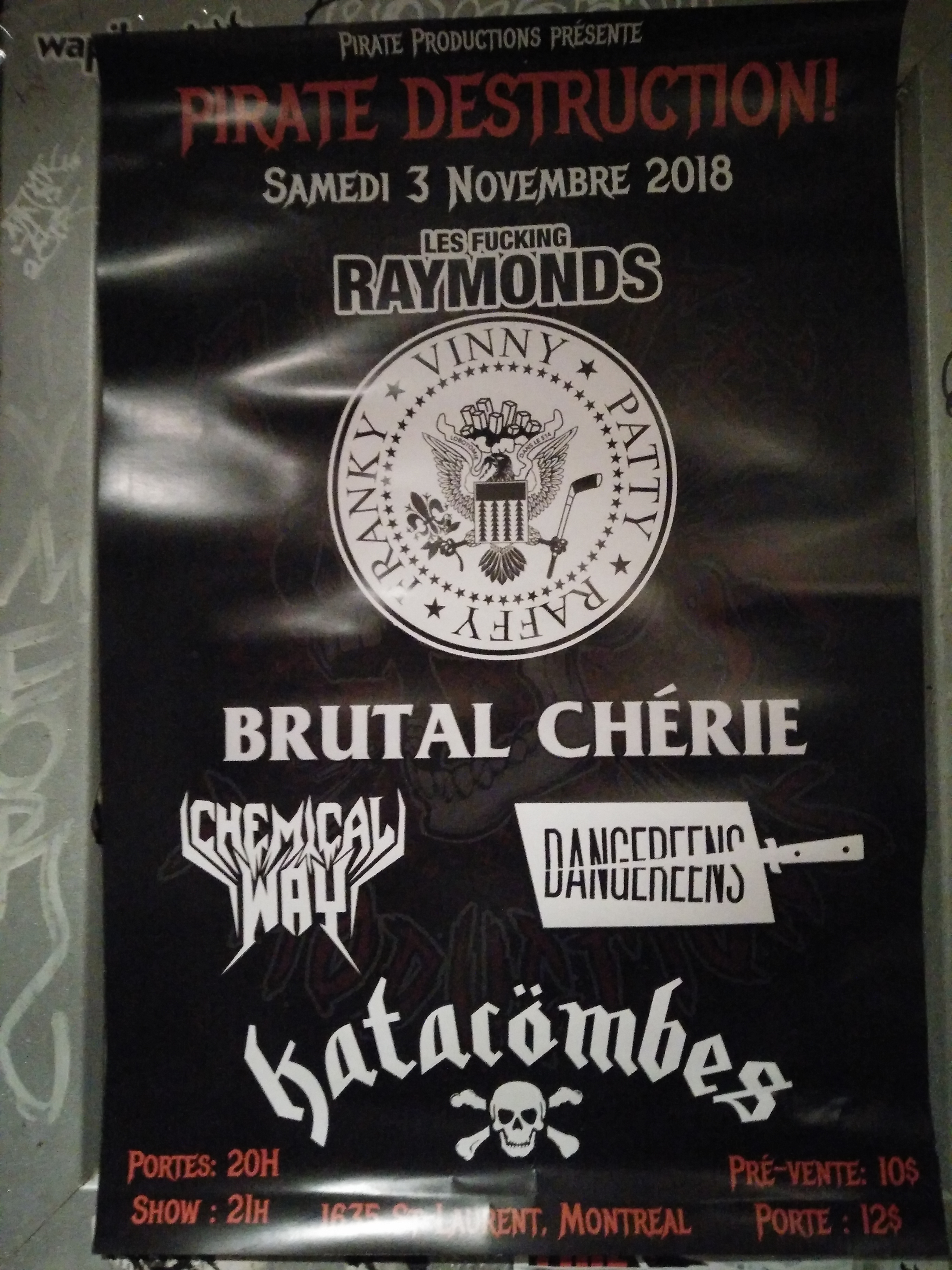 There is a very good alternative music scene in Montreal. While over there, we attended a few shows. We saw the Creepshow at the Petit Campus, we’re not huge fans but they are good musicians and it was nice to meet and talk to people from the Psychobilly scene in Quebec. Another night, Jeremy went to see les Fucking Raymonds, a hilarious Ramones cover band that sings in Quebec french. They were playing at the Katacombes, a very cool co-op venue known for its punk shows. A week after, we were there again to see Bloodshot Bill and the Hiccups for their album release. Excellent show, special mention to the Lab Ratz which were excellent too, great Psychobilly band from Montreal.