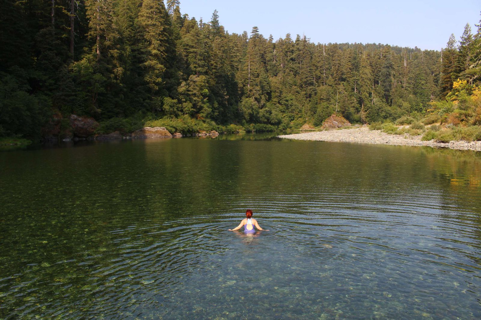 After crossing the border to California, we managed to get a spot at a camping in the Red Wood National Forest. Great place with a river in which we swam, and some hiking trails. Huge red woods, last time we were as impressed with natural wonders was in Banff. The place was Jedediah Smith. The day after, we drove through the Avenue of the Giants, which is the old 101 and goes through different groves of giant red woods.